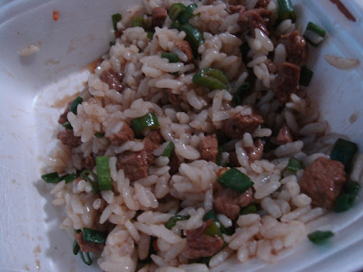 No he podido dejar de comerlo, desde que lo probé, hace como 8 años XD. Es nada mas ni nada menos que arroz al vapor, carne de res cocida, cebollin y chiles. Nada mas. Desde que lo probé me fascino. No me aburro de comerlo...y nunca me aburriré. Lo compro en un lugar de comida japonesa(mexicana) llamada Shitsu. Esta como a una cuadra de mi casa. Mi madre sospecha si el dueño no le pone alguna droga...¬¬
